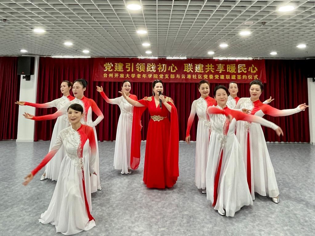 活动伊始,白云街道组织员李志伟在致辞中指出:“校社共建是盘活教育资源、服务社区民生的重要抓手,期待双方以党建为纽带,打造‘老有所学、老有所为’的基层治理新样板。”随后,台州开放大学老年学院党支部书记丁亚萍与云港社区党委书记陈群签署共建协议,明确在党员联学、活动联办、服务联创等方面深化合作。
